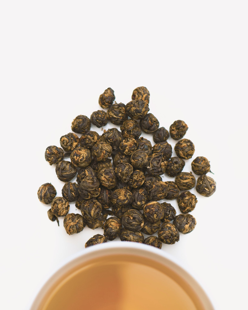 Po zaliatí sa perly pomaly rozvíjajú a uvoľňujú hlboký, tmavo jantárový nálev. Chuť je plná, hladká a zamatová, s tónmi kakaa, sušeného ovocia a jemného korenia, ktoré sa krásne rozvíjajú v dlhom a sladkom dozvuku. Vďaka svojej robustnosti a vyváženosti je tento čaj vhodný aj na viacnásobné nálevy, pričom každý z nich odhaľuje nové vrstvy chutí a vôní.
