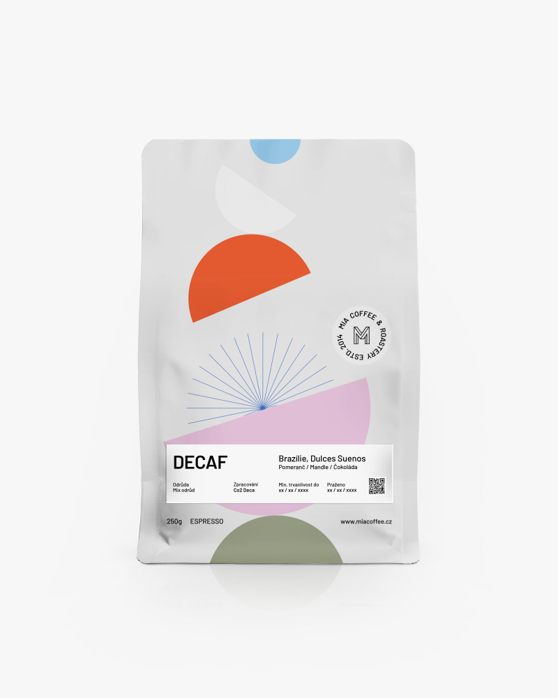 Bezkofeínová verzia tejto kávy je zbavená kofeínu pomocou procesu Sparkling Water, ktorý využíva prírodný oxid uhličitý a vodu. Tento šetrný a organicky certifikovateľný spôsob selektívne odstraňuje iba kofeín bez narušenia chuťových a aromatických látok. Zelené zrná sa najprv zvlhčia, aby sa otvorila ich bunková štruktúra. Následne sú vystavené tlakovému CO₂, ktorý v kombinácii s vodou funguje ako prirodzené „perlivé rozpúšťadlo“ kofeínu. Proces sa opakuje, kým sa nedosiahne požadovaná hladina kofeínu, po čom sa zrná šetrne vysušia späť na pôvodnú vlhkosť.