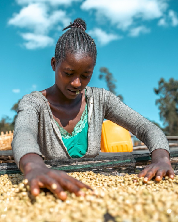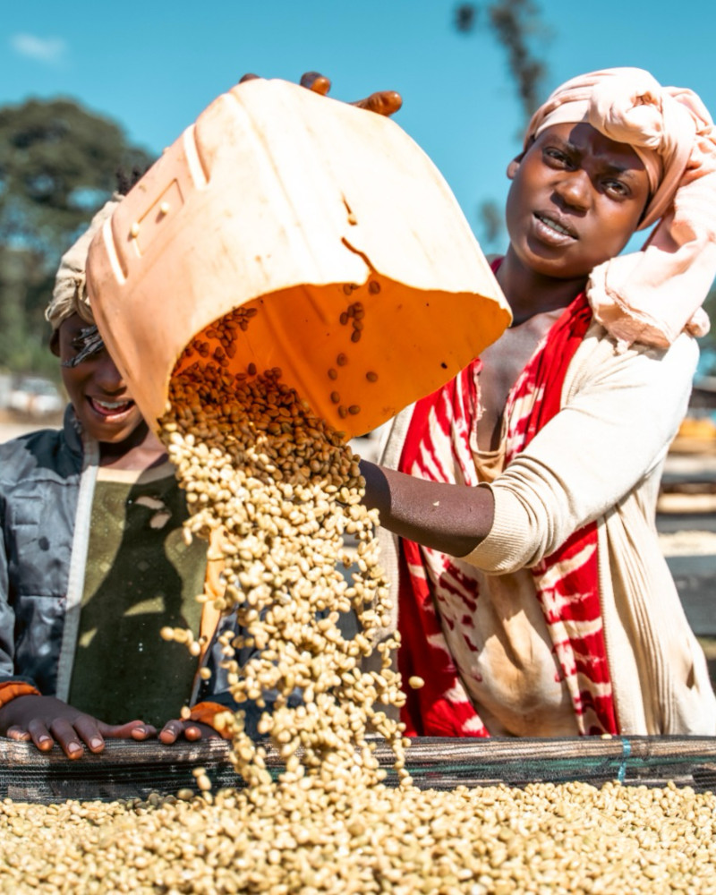 Zozbierané čerešne farmári ešte v ten istý deň doručujú do mokrej spracovateľskej stanice Yabitu Tume, kde prechádzajú starostlivým premývaným spracovaním – fermentáciou, máčaním a sušením na vyvýšených posteliach. Stanica funguje udržateľne: zvyšky z čerešní sa premieňajú na organické hnojivo a odpadová voda sa bezpečne čistí. Výsledkom je káva s čistým chuťovým profilom plným ovocných tónov, medovej sladkosti a šťavnatého záveru – odraz starostlivosti a tradície miestnej komunity.