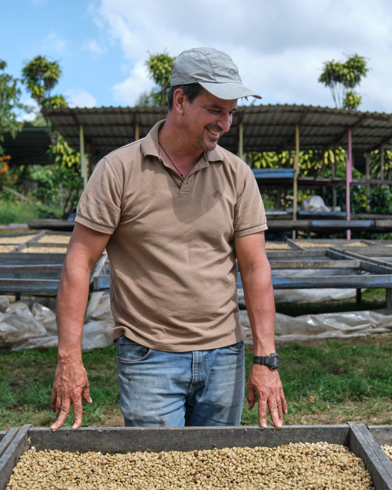 Kávové čerešne sa spracúvajú priamo v rodinnom mikromlyne, ktorý sa nachádza doslova pri ich dome. Po zbere je káva okamžite odšupkovaná a časť dužiny zostáva na zrne, čo je základ metódy Yellow Honey. Následne sa suší najskôr na vyvýšených lôžkach a potom na krytom „patio“, kde sa pravidelne obracia, až kým nedosiahne optimálny výsledok. Tento šetrný spôsob spracovania podporuje sladkosť, šťavnatosť a jemne medový charakter, typický pre kvalitné Honey procesy z Kostariky.
